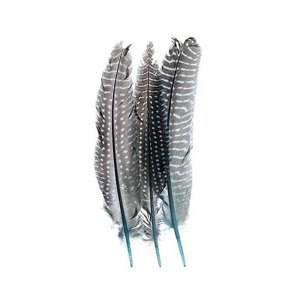 Description: Cleaned & sanitized natural guinea fowl quill feathers. For use in native crafts, hair pieces, costumes, etc.