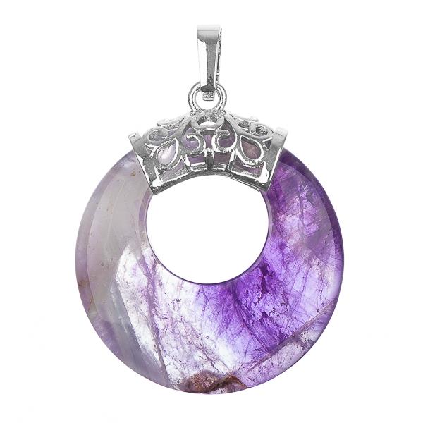 This elegant donut-style pendant showcases the natural beauty of ametrine, blending soft purples and warm golden tones in a smooth, polished finish. Topped with a decorative silver-tone bail, it offers a refined, airy look that highlights the stone’s unique colour variations. Use it as a striking centrepiece for necklaces, add it to beaded chains for a gemstone statement piece, incorporate it into wire-wrapped designs, or feature it in spiritual and energy-inspired jewellery. This pendant brings harmony, balance, and earthy elegance to any handmade creation.