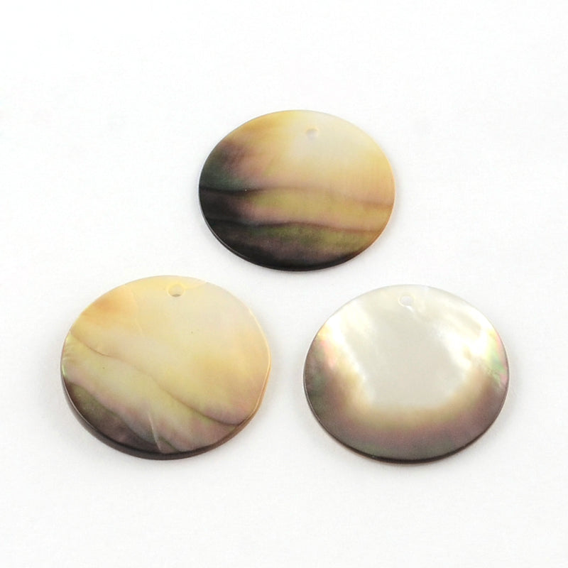 These flat round pendants are crafted from natural Black Lip Shell, showcasing beautifully iridescent surfaces with soft waves of gold, cream, grey, and deep smoky tones. Their smooth, lightweight design makes them perfect as focal pieces for boho necklaces, beach-inspired jewellery, layered earrings, or stylish DIY accessories. Each pendant is one-of-a-kind, with unique colour patterns and natural shimmer that add organic elegance and coastal charm to any handmade creation.