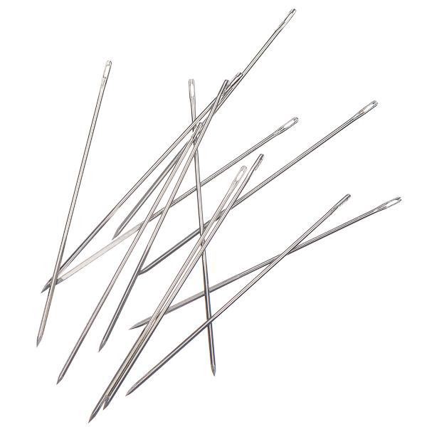 John James Size 10 Glover Leather Needles are finely crafted for detailed hand-stitching on light to medium-weight leather, suede, and vinyl. Measuring approximately 1.25 inches (32mm) in length with a thickness of about 0.46mm, these needles feature a sharp triangular point that cleanly pierces tough materials without causing damage or distortion. Size 10 strikes a perfect balance between strength and precision, making them ideal for beading, small leather accessories, and intricate repair work. Known for their durability and ease of use, these needles are a reliable choice for leathercrafters who require accuracy and control.