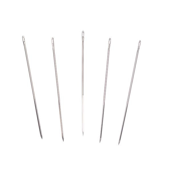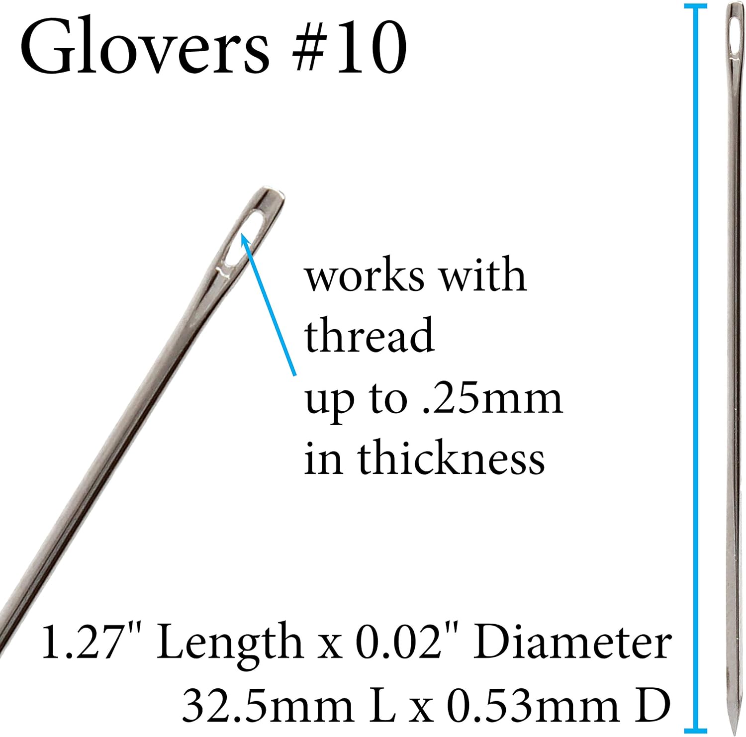John James Size 10 Glover Leather Needles are finely crafted for detailed hand-stitching on light to medium-weight leather, suede, and vinyl. Measuring approximately 1.25 inches (32mm) in length with a thickness of about 0.46mm, these needles feature a sharp triangular point that cleanly pierces tough materials without causing damage or distortion. Size 10 strikes a perfect balance between strength and precision, making them ideal for beading, small leather accessories, and intricate repair work. Known for their durability and ease of use, these needles are a reliable choice for leathercrafters who require accuracy and control.