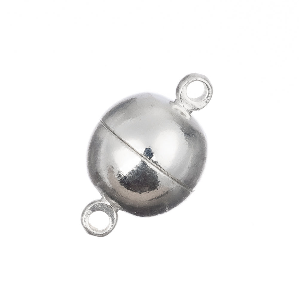 Description: Round magnetic clasp with loops. Measures 10mm wide x 16mm long, 1.2mm hole. Metal plated brass.