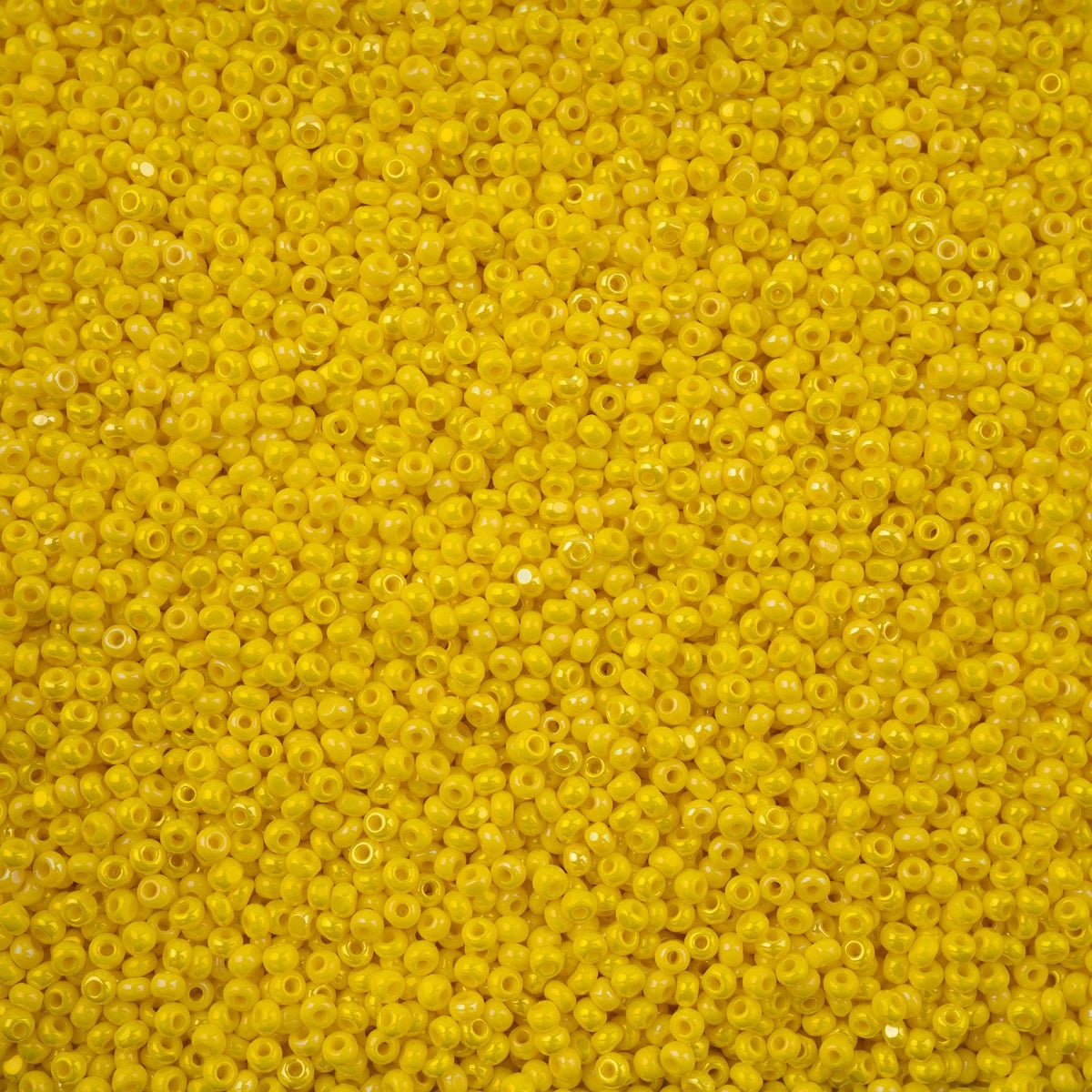 11/0 Czech Cut Seed Beads #37088 Opaque Yellow Rainbow 13g