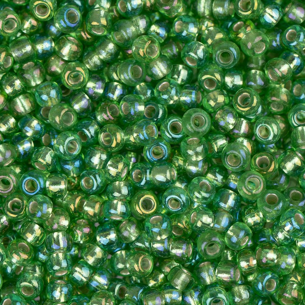 11/0 Czech Seed Beads #35063 Silver Lined Rainbow Green 23g