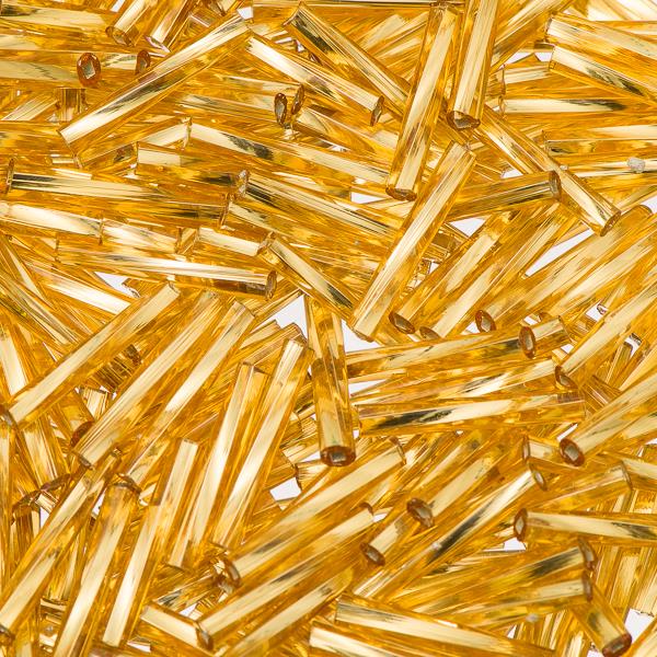 15mm Twisted Czech Bugle Beads Silver Lined Gold 25g Bag