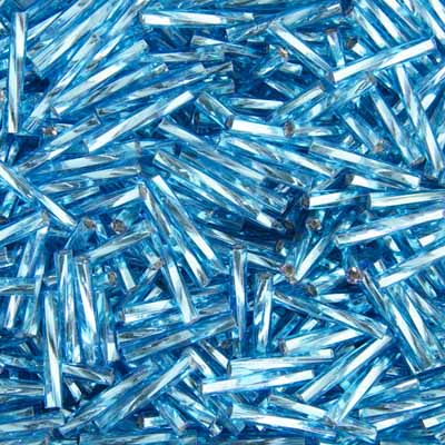 15mm Twisted Czech Bugle Beads Silver Lined Aqua 25g Bag
