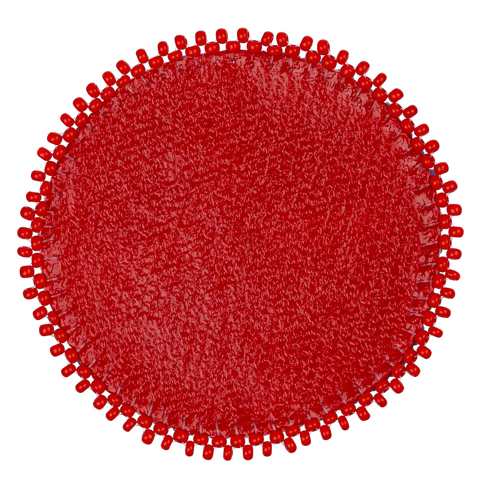 Description: Beaded rosette with faux leather backing. Ideal for use on native crafts such as mitts, moccasins, pouch or purse, garments, regalia, hair ties or barettes, and bolo ties. Imported.