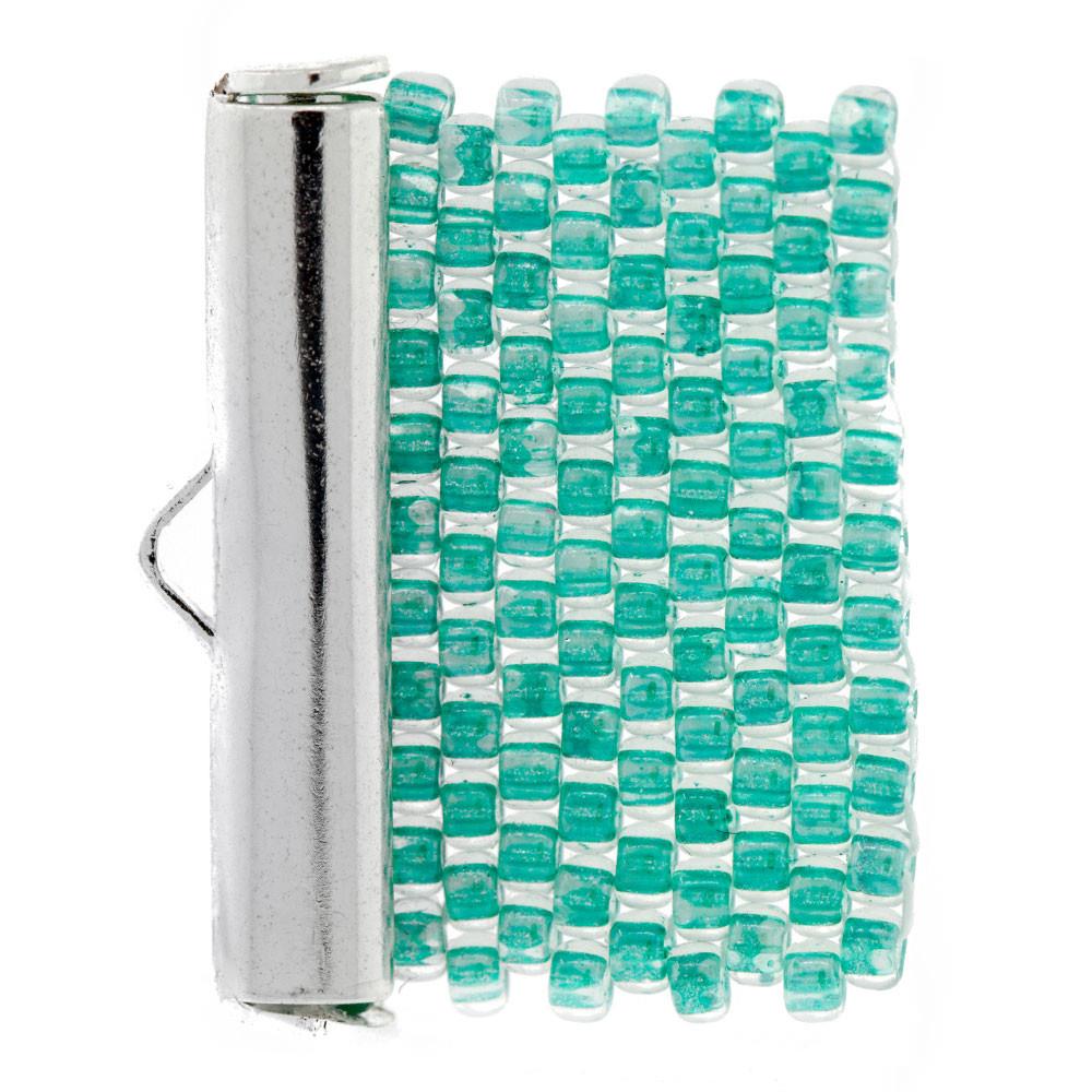 Description: End tubes are the perfect way to end your beadwoven designs. Carefully slide the end of the woven piece down into the tube. When the piece is completely inside the tube, use your chain nose pliers to close the last tab on the tube, then attach clasp. These finishings can work on jewelry made with basic herringbone, loom weaving, brick stitch, flat square stitch, and more. Fits size 8/0 and 11/0 seed beads. Plated brass. Measures 6mm long, 25mm wide, 4mm thick, hole: 1x3mm; inner diameter: 3mm.
