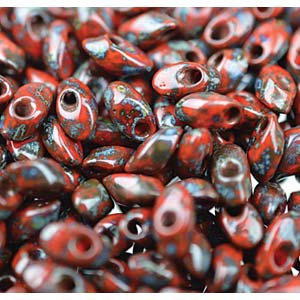 Long Magatama Beads #4513 Picasso Red Garnet 8.5g