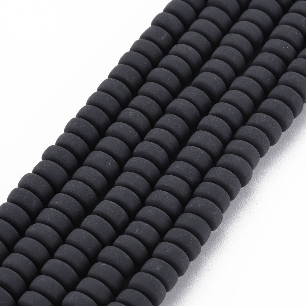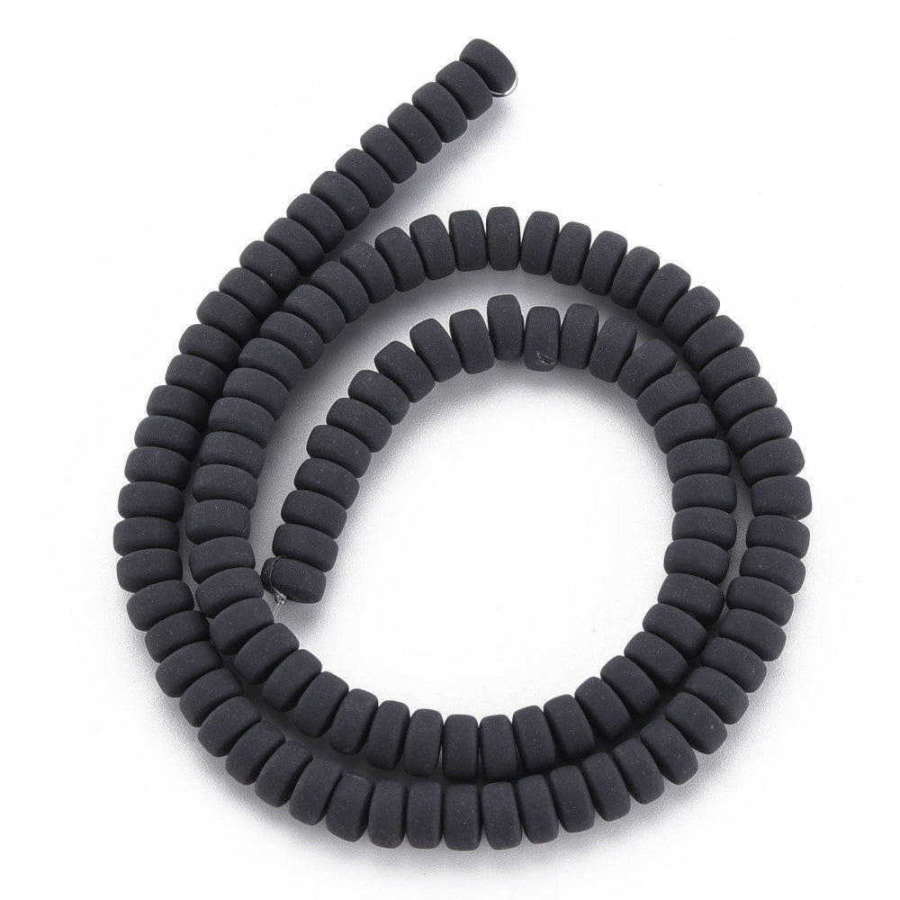 Description: Handmade Polymer Clay Beads. Round with flat sides. Measure about 6mm wide x 3mm thick, 1.5mm hole. Sold by the strand.