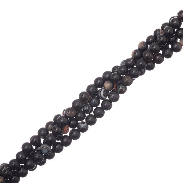 Striped Agate Black Beads 4mm Round Grade A (Natural/Dyed) 15-16" Strand