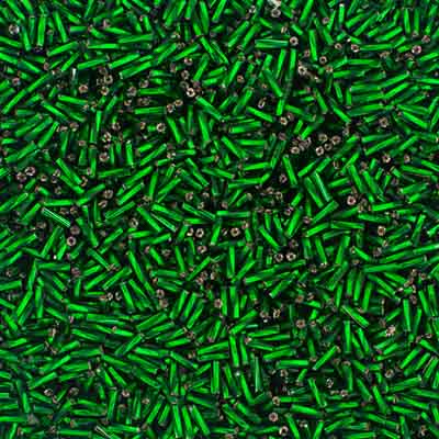 #5 Twisted Czech Bugle Beads Silver Lined Dark Green 25g Bag