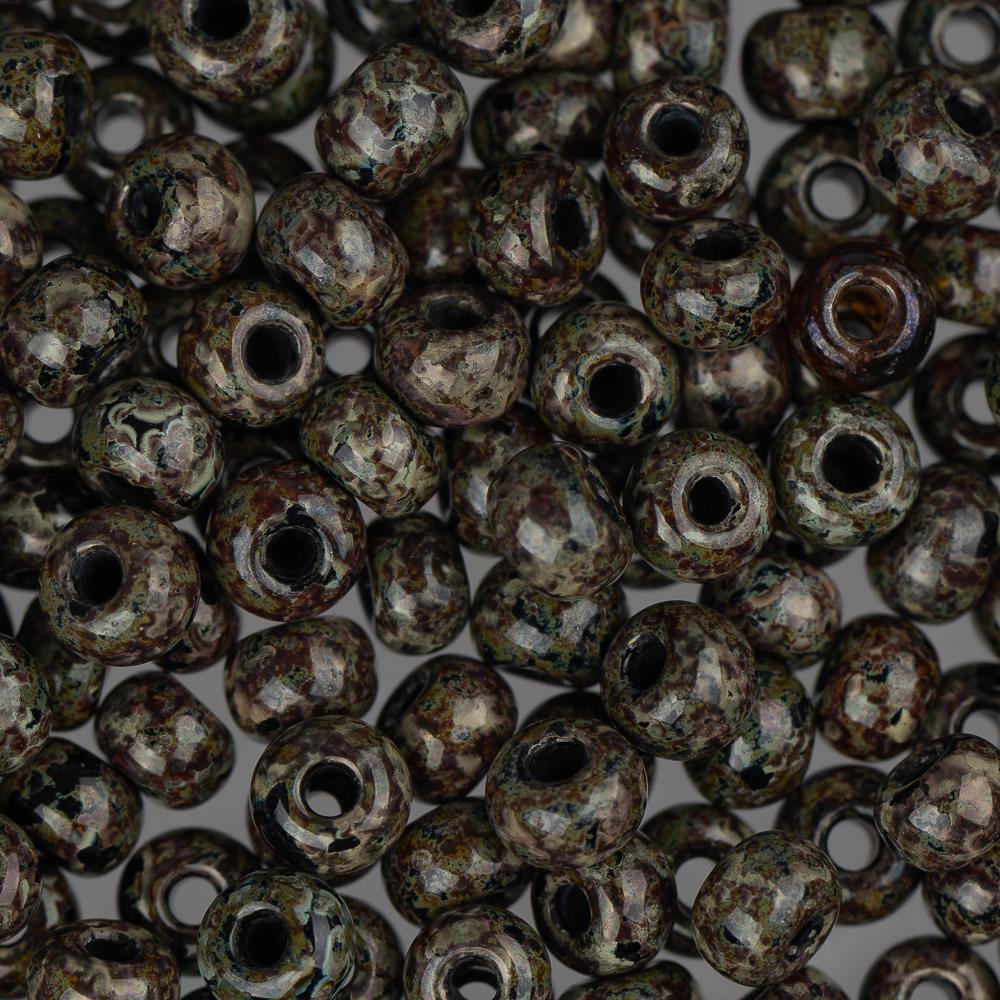 6/0 Czech Seed Beads #114 Travertine On Black 22g
