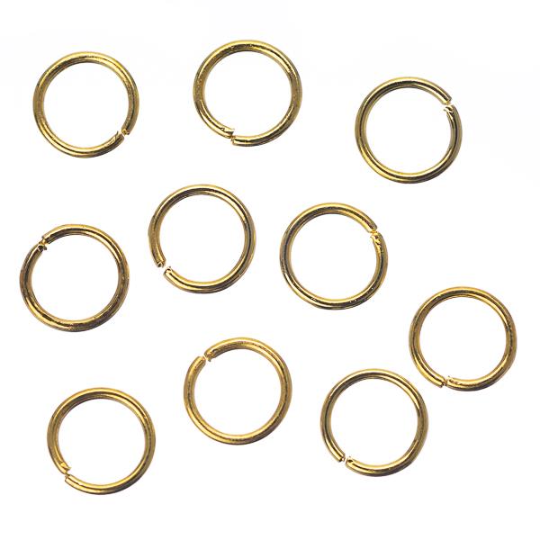 Description: 21 gauge unsoldered jump rings. Essential for every jewelry designer. Great for connecting links, clasps, charms & other Jewelry. Easy-to-use and no soldering required. Gold colour plating on Steel base.