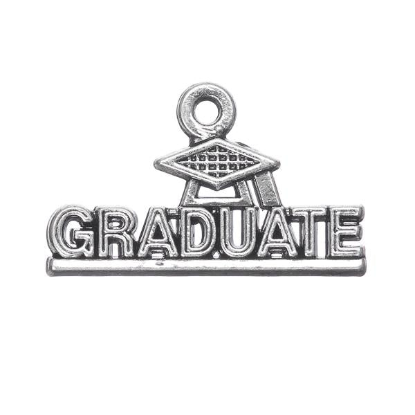 Celebrate big achievements with this meaningful Graduate charm. Crafted in an antique silver finish, it features bold raised lettering topped with a classic graduation cap, making it a perfect keepsake piece. Ideal for charm bracelets, necklaces, keychains, zipper pulls, or DIY gifts for grads, this charm adds a proud, celebratory touch to any handmade creation.