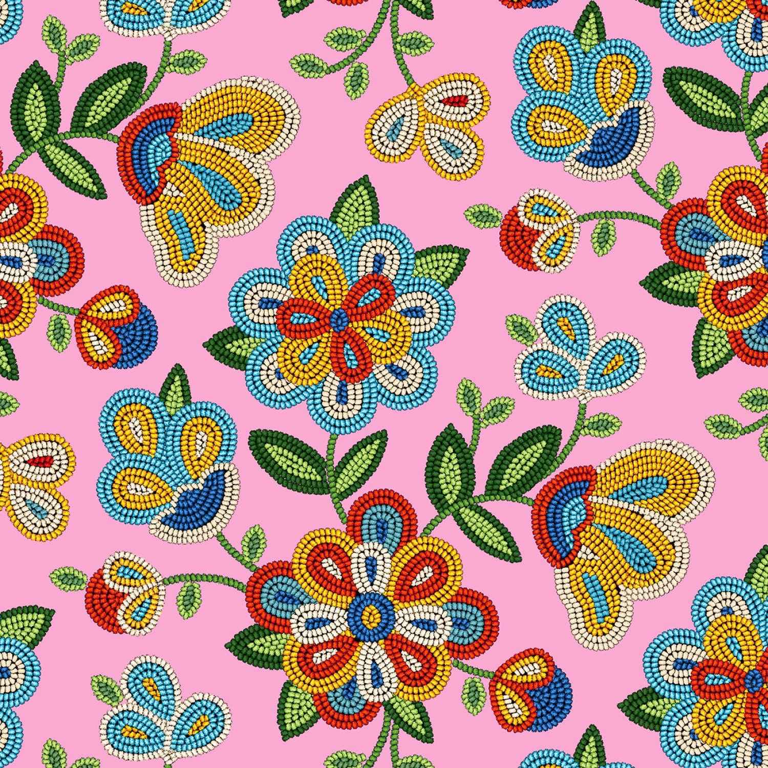 This cotton fabric bursts with stunning beaded floral designs, celebrating growth, renewal, and cultural artistry with blossoms that seem alive with tradition. Its lightweight, versatile weave makes it ideal for ribbon skirts, regalia accents, shawls, and star quilts, while also lending itself beautifully to tote bags, table runners, and wall hangings that brighten any space with meaning. Sold by the half yard; multiple quantities are sold in one continuous cut. Pre-wash and dry before sewing to prevent shrinkage. Machine wash cold with like colours; tumble dry low; warm iron.