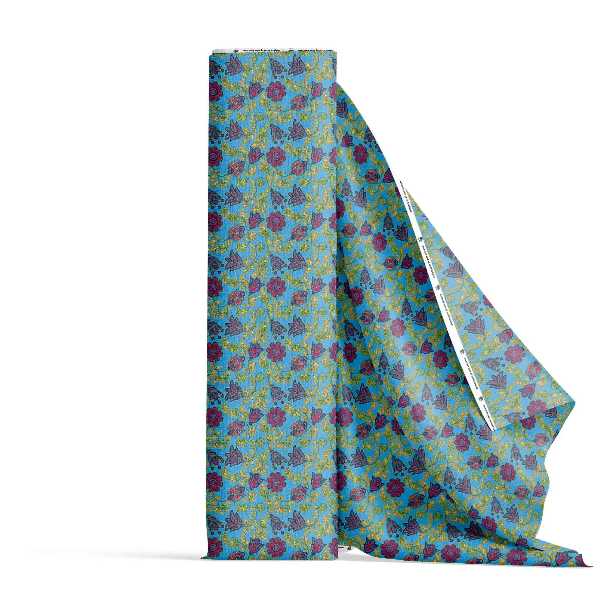 This cotton fabric features a beaded nouveau floral design, styled to resemble traditional beadwork and flowing vines for a pattern that feels both meaningful and modern. Lightweight yet versatile, it’s perfect for ribbon skirts, regalia accents, star quilts, and shawls, while also lending itself beautifully to tote bags, table runners, and wall hangings that celebrate cultural artistry. Sold by the half yard; multiple quantities are sold in one continuous cut. Pre-wash and dry before sewing to prevent shrinkage. Machine wash cold with like colours; tumble dry low; warm iron.