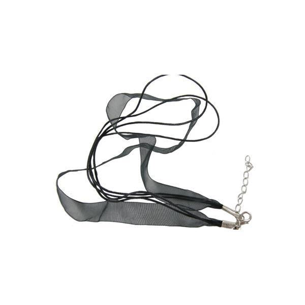 Description: Just add a pendant or charm to this ready made necklace. It's as easy as 1,2,3. Cotton waxed cord and organza ribbon necklace with nickel colour lobster clasp. Measures 17 inch long.