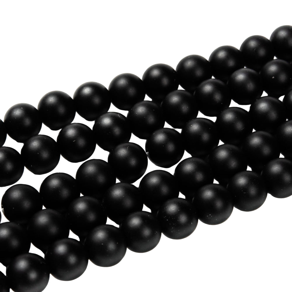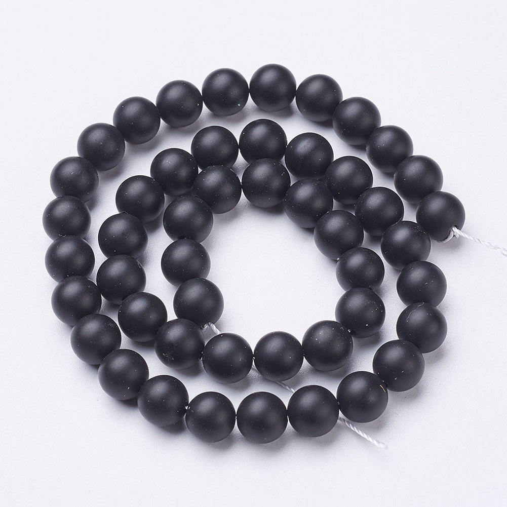These smooth, matte-finished beads display a rich, uniform black tone achieved through gentle heat treatment and dye enhancement on natural agate. Known as a stone of protection and grounding, Black Agate is believed to absorb negativity, promote calm, and encourage emotional stability. Their frosted finish gives a modern, understated elegance that pairs beautifully with metals or colourful gemstones, making them perfect for contemporary or classic jewellery designs. Slight variations in colour, size, and markings are to be expected, adding to their one-of-a-kind appeal.