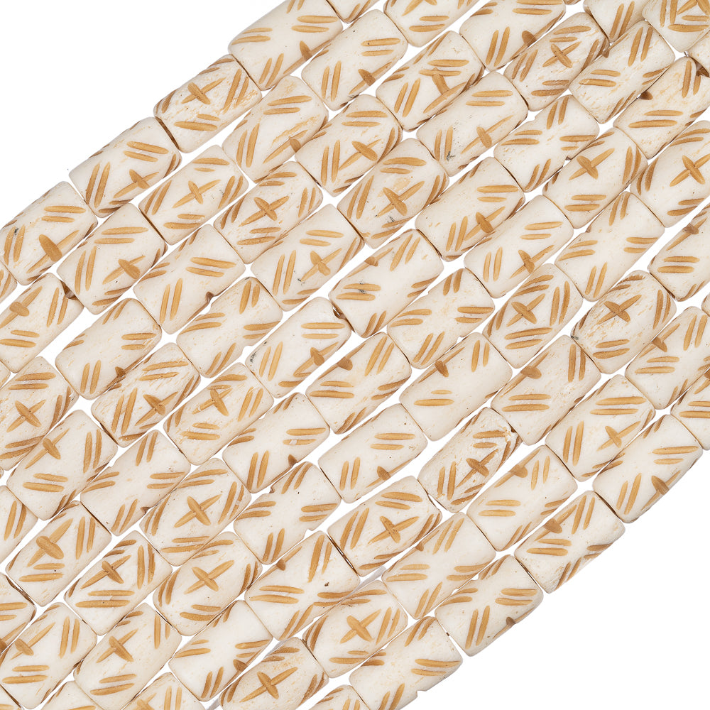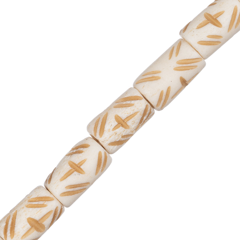 Bone Carved Pipe Beads 0.5" Antique Ivory 16/Strand