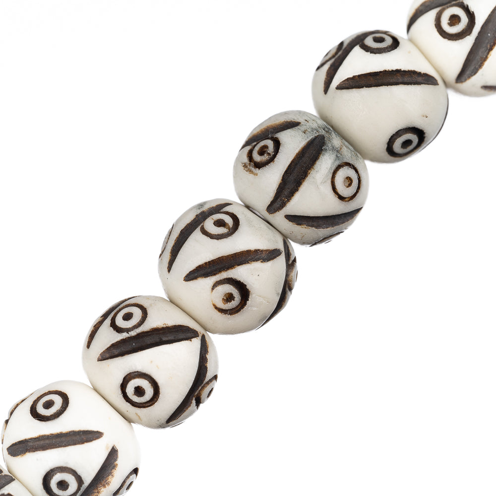 Bone Carved Beads 10mm Antique Ivory 20/Strand