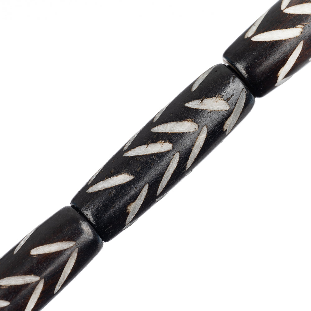 Bone Carved Tube Beads 1" Dark Brown 8/Strand