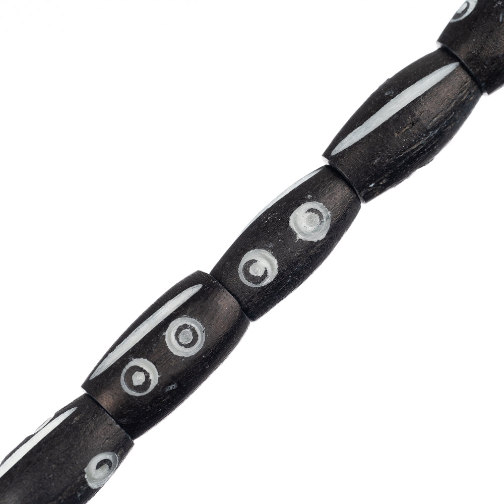 Bone Carved Tube Beads 0.5" Black & White 15/Strand