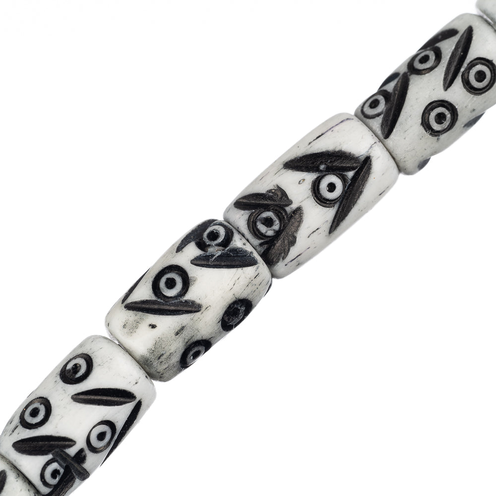 Bone Carved Tube Beads 0.5" White & Black 16/Strand