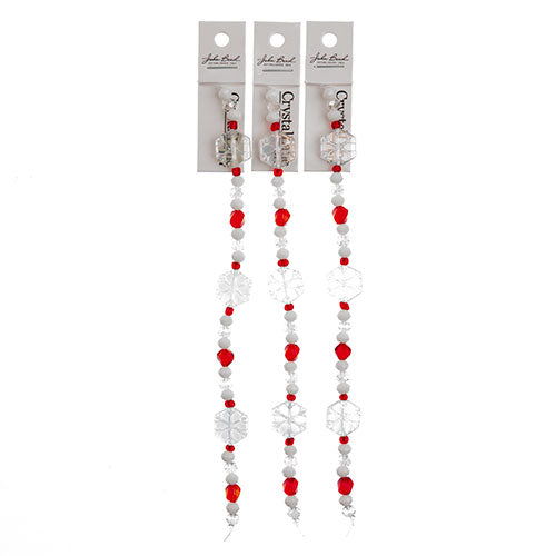 Description: Crystal Lane brand DIY designer holiday beads. Includes 3 x glass snowflake beads with crystal, white and red beads.