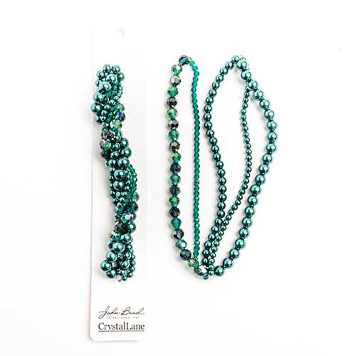 Crystal Lane DIY twisted bead strands feature a beautiful mix of shimmering glass beads, pre-strung in a twisted, textured design. Perfect for making bracelets, necklaces, and earrings, these ready-to-use strands add instant sparkle and dimension to your jewellery projects. Great for beginners and experienced crafters alike, they offer an easy way to create elegant, eye-catching pieces. Each package includes 5 x 6 inch strands. Each card features three glass pearls (8mm, 6mm, 4mm) and two unique glass bead strands.