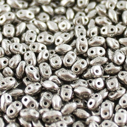 *Czech Miniduo Beads Jet Silver Pastel Matte 8g