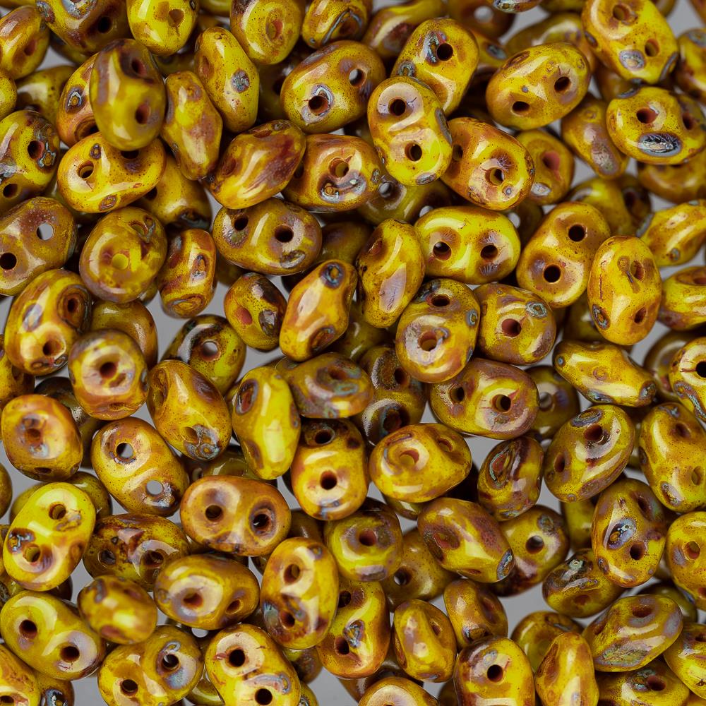 *Czech Superduo Beads Lemon Dark Travertine 22g