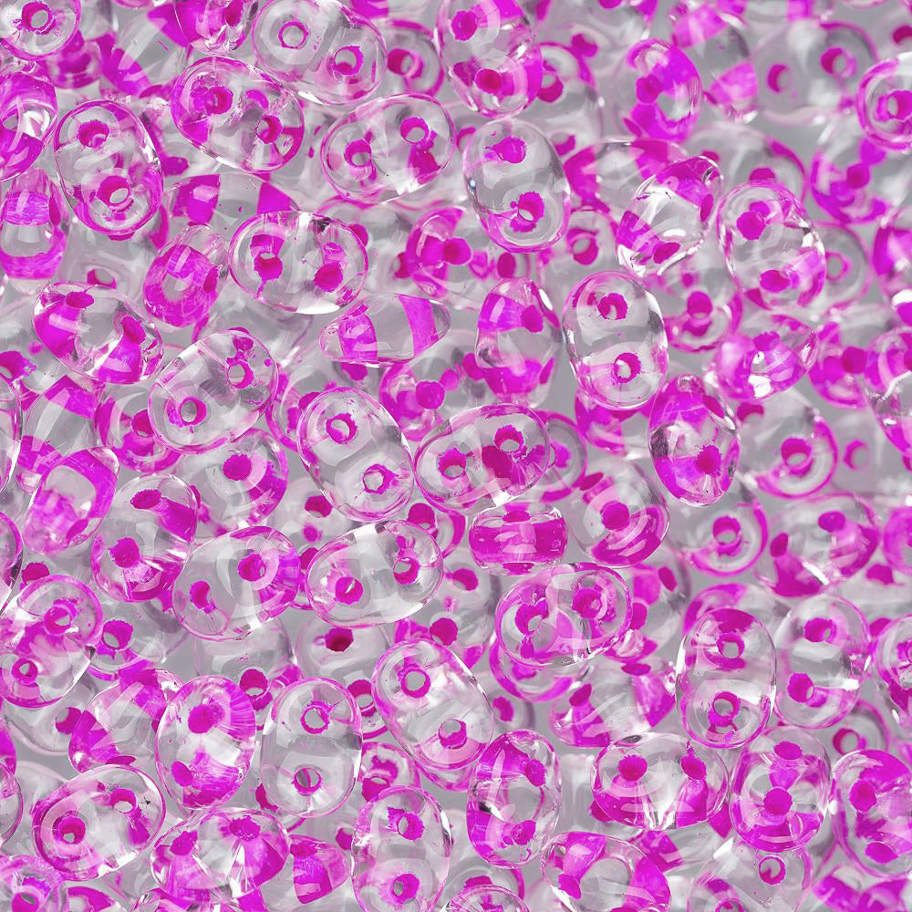 *Czech Superduo Beads Pink Lined Crystal 22g