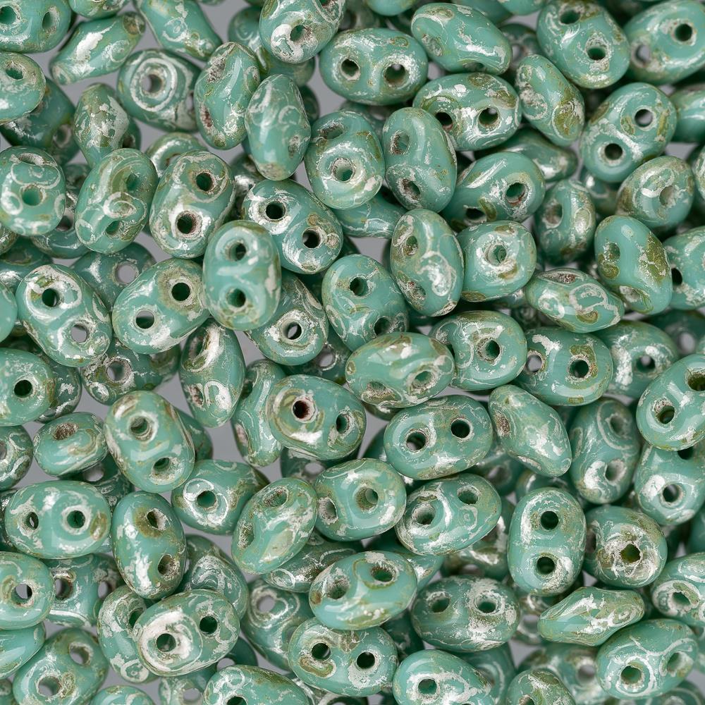 *Czech Superduo Beads Turquoise Green Picasso 22g