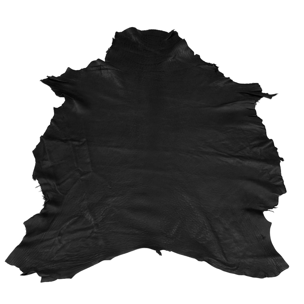 Offering the same soft, supple feel and deep black finish at a great value, our #2 Grade includes more visible character. Expect some linear grain/crease lines and areas with surface cracks, plus a few small holes or blemishes typical of the grade. Still strong, flexible, and easy to work with, it’s perfect for moccasins, gloves, apparel panels, trim, fringe, beadwork, bags, and smaller projects where smart pattern placement maximizes yield. Consistent colour and comfortable drape make it a reliable, budget-friendly choice.
