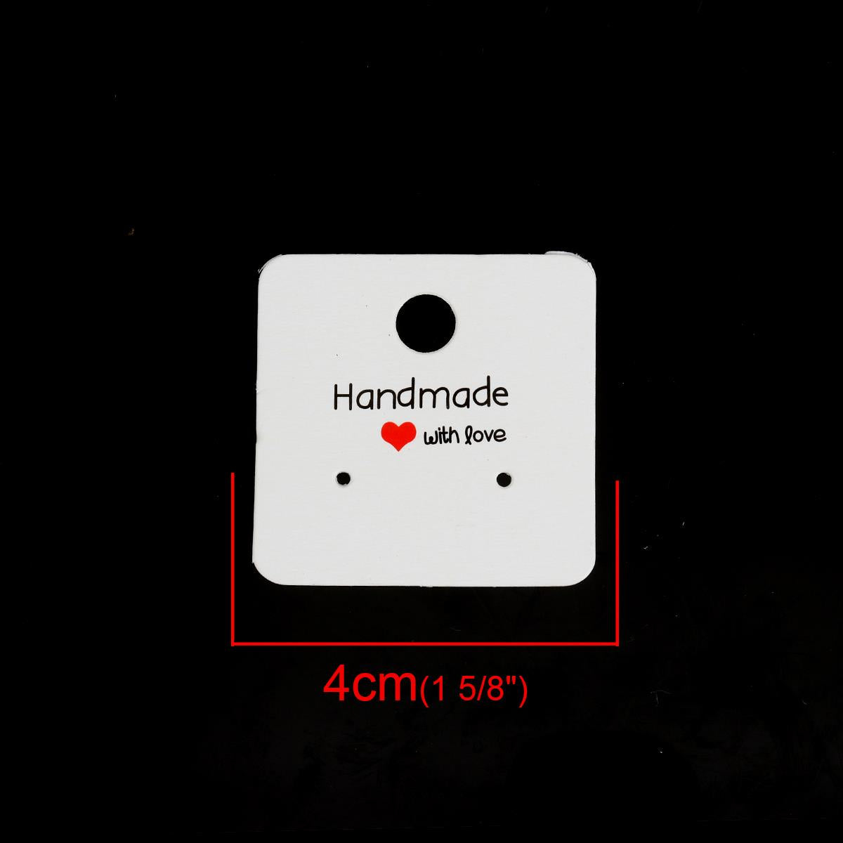 Description: White cardstock paper earring jewelry cards with 2 holes, and hole for hanging. Measure 40mm wide x 40mm long x 0.5mm thick.
