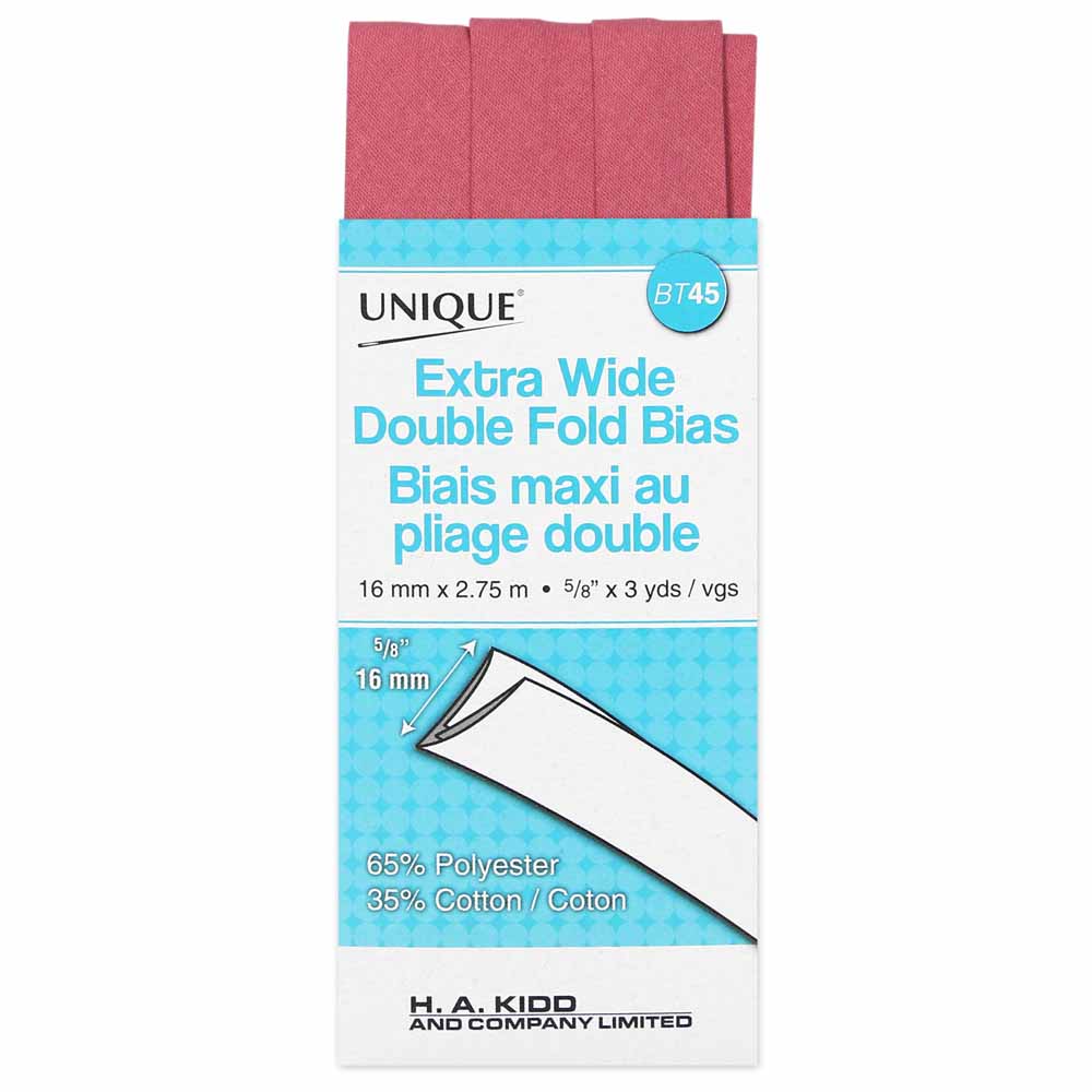 UNIQUE Extra Wide Double Fold Bias Tape measures 16mm wide x 3 yards long. Used to stabilize or finish raw edges with stretch seams for home décor items such as table runner, place mats etc. Can be used as decorative binding or casing. 65% polyester and 35% cotton. Machine wash 40°, tumble dry and iron at low heat, dry cleanable.