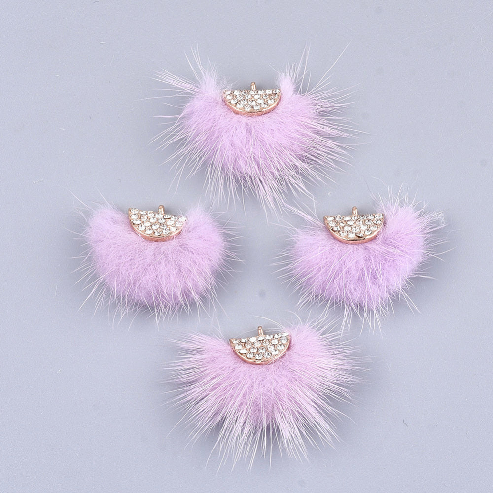 Description: Decorative fan shaped faux mink fur tassel with gold alloy rhinestone bail. Size: about 24~28mm long, 29~34mm wide, 8mm thick, hole: 1.5mm.
