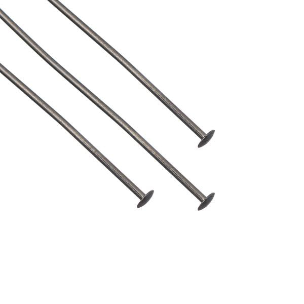 Description: A jewelry-maker's staple, Headpins allow you to make earrings, pendants, links and drop embellishments. Measures 1 inch x 0.7mm (22 gauge). Plated Brass. Nickel free, Lead free, and Cadmium free.