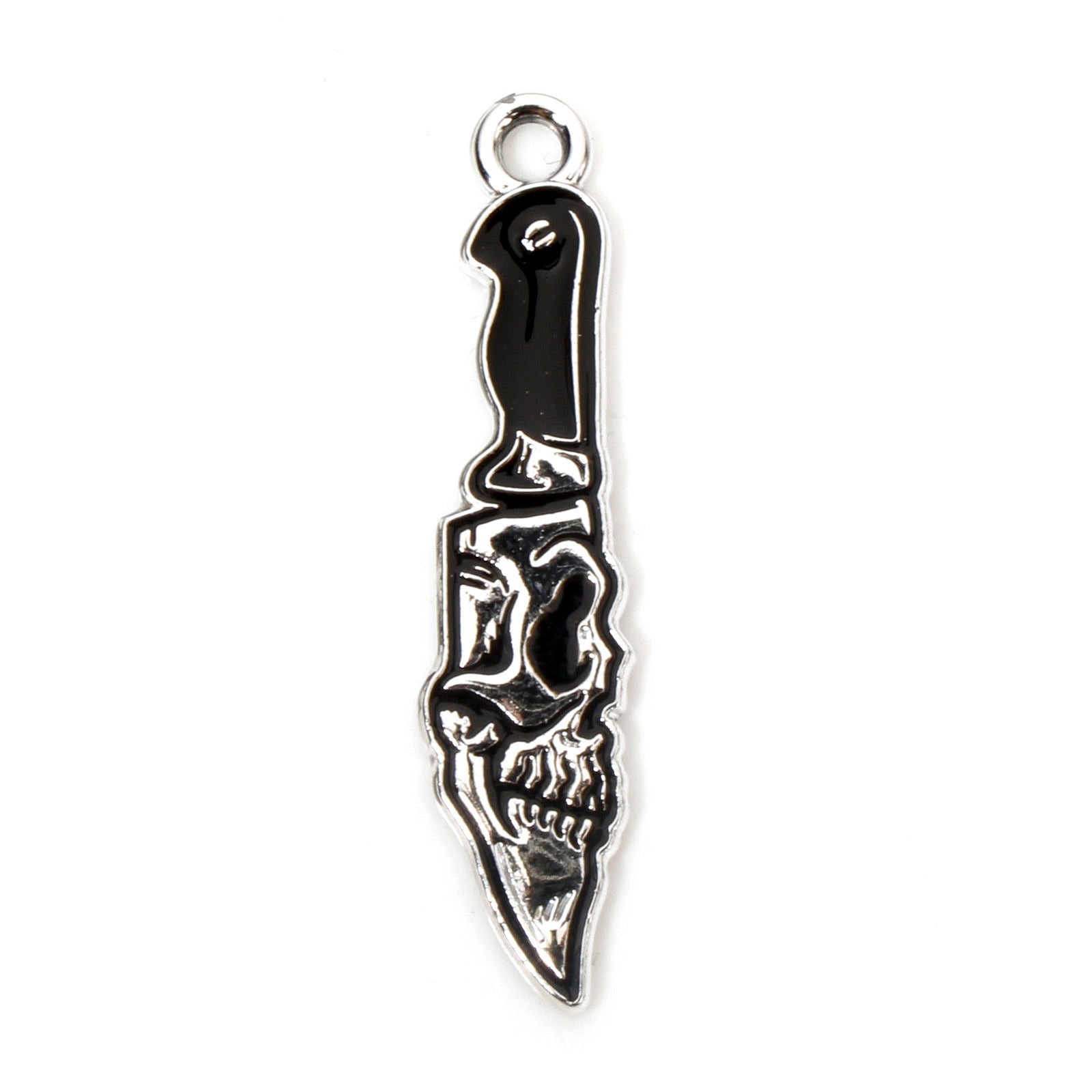 Add a cutting edge to your jewellery collection with our Knife Enamel Charm featuring a Skull Motif, perfect for Halloween-inspired designs. With sleek enamel detailing and bold gothic style, this versatile piece can be added to a necklace, bracelet, or earrings for rebellious flair that’s sure to spark conversation. A bold must-have for statement-making accessories.