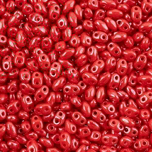 Matubo Czech Miniduo Beads Coral Red White Luster 13g