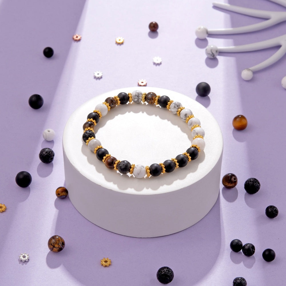 Description: Gemstone and Metal Beads Bracelet Making Kit includes Natural Gemstone Round Beads, Alloy Daisy Spacer Beads and Clear Elastic Cord.