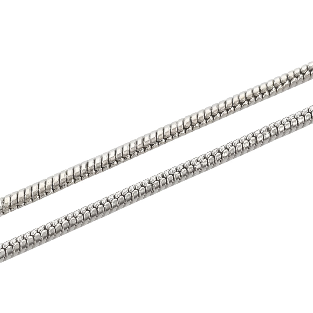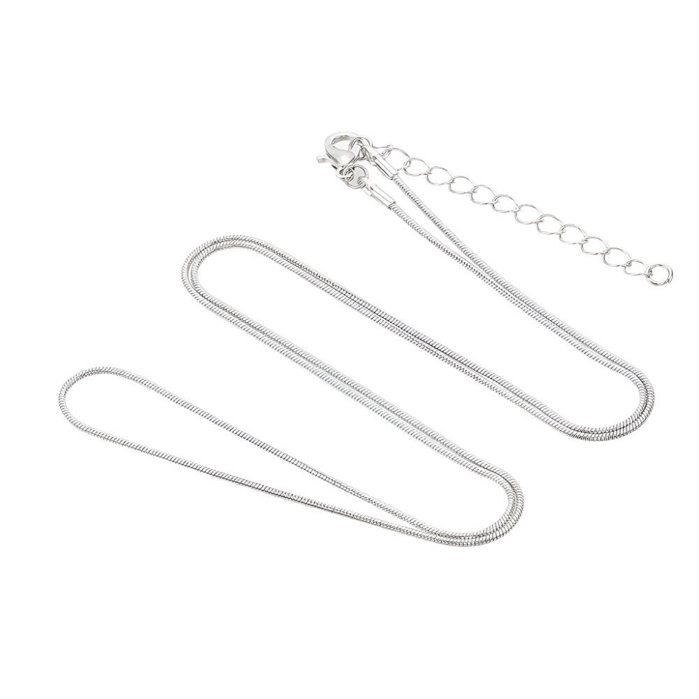 Description: Just add a pendant or charm to this ready made necklace. It's as easy as 1,2,3. Fine snake chain necklace has lobster clasp attached with fine jump rings and a chain extender. Measures 24.4 inch long x 1.2mm thick. Plated brass. Lead free, Cadmium free.