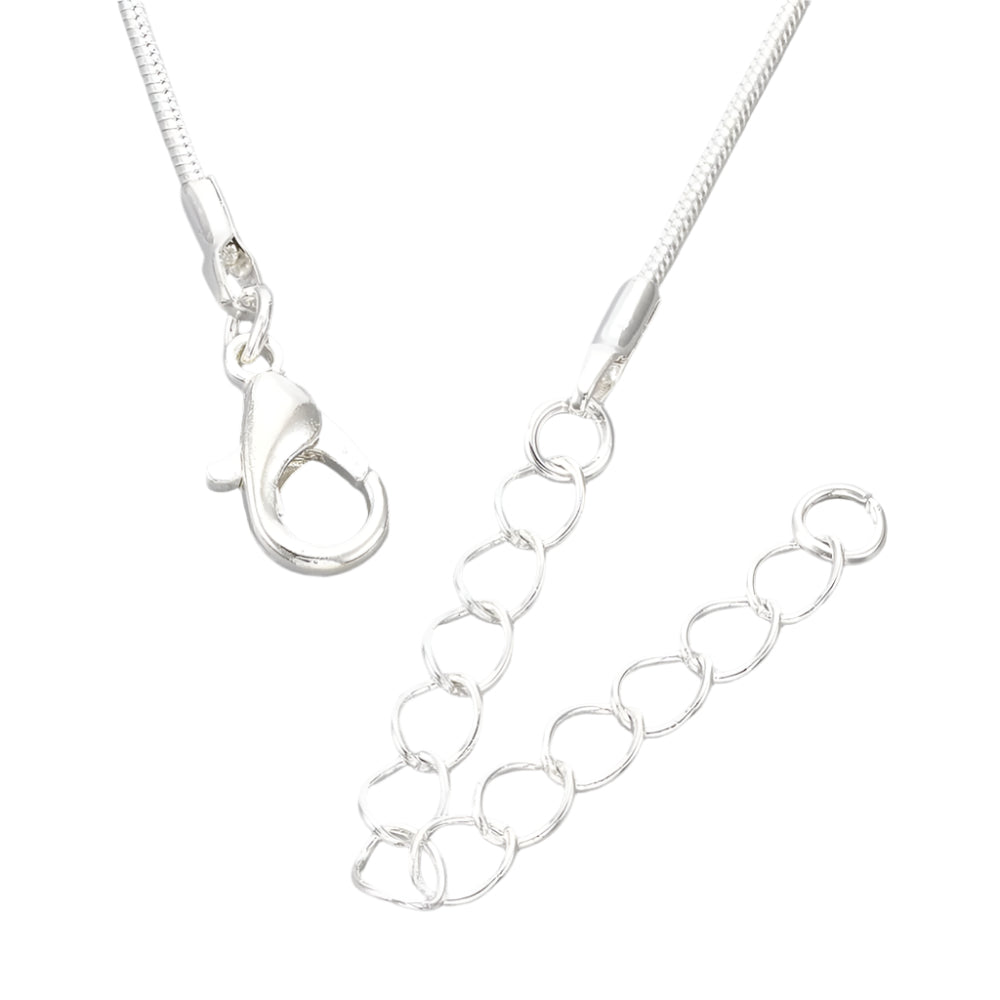 Description: Just add a pendant or charm to this ready made necklace. It's as easy as 1,2,3. Fine snake chain necklace has lobster clasp attached with fine jump rings and a chain extender. Measures 24.4 inch long x 1.2mm thick. Plated brass. Lead free, Cadmium free.