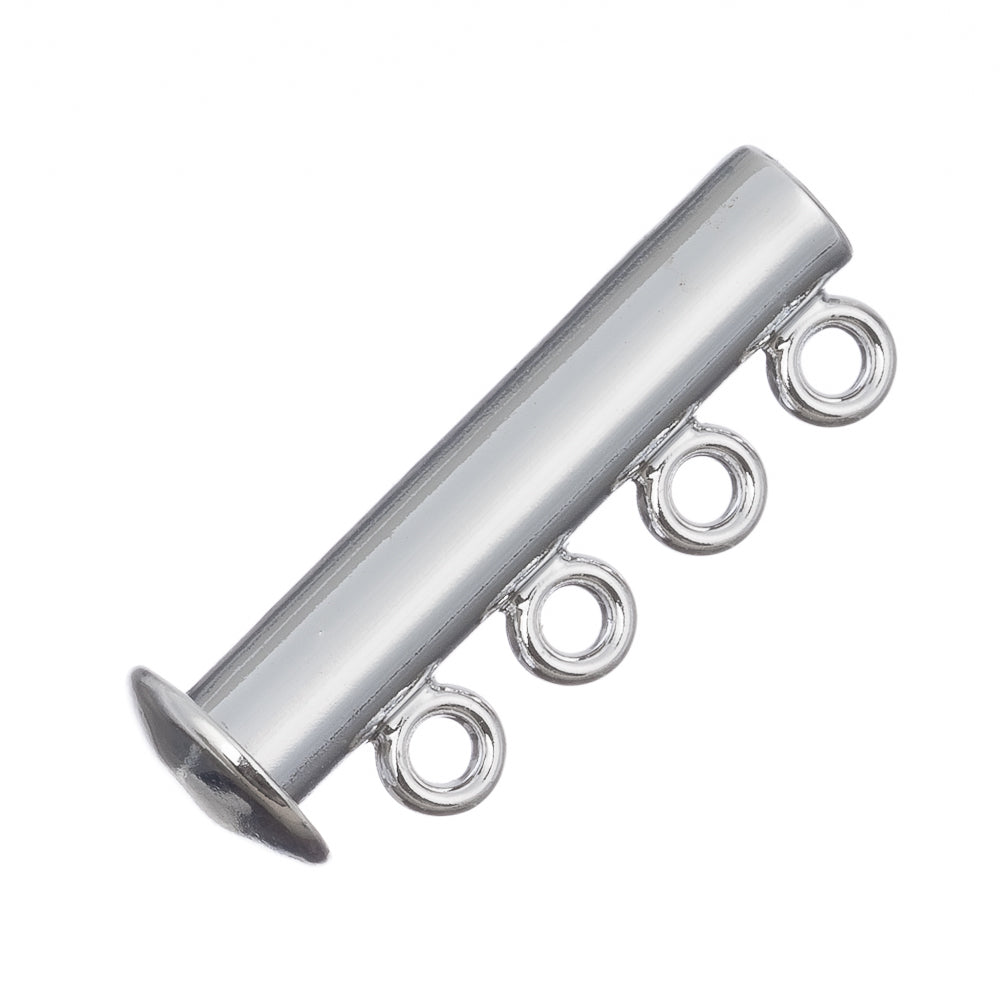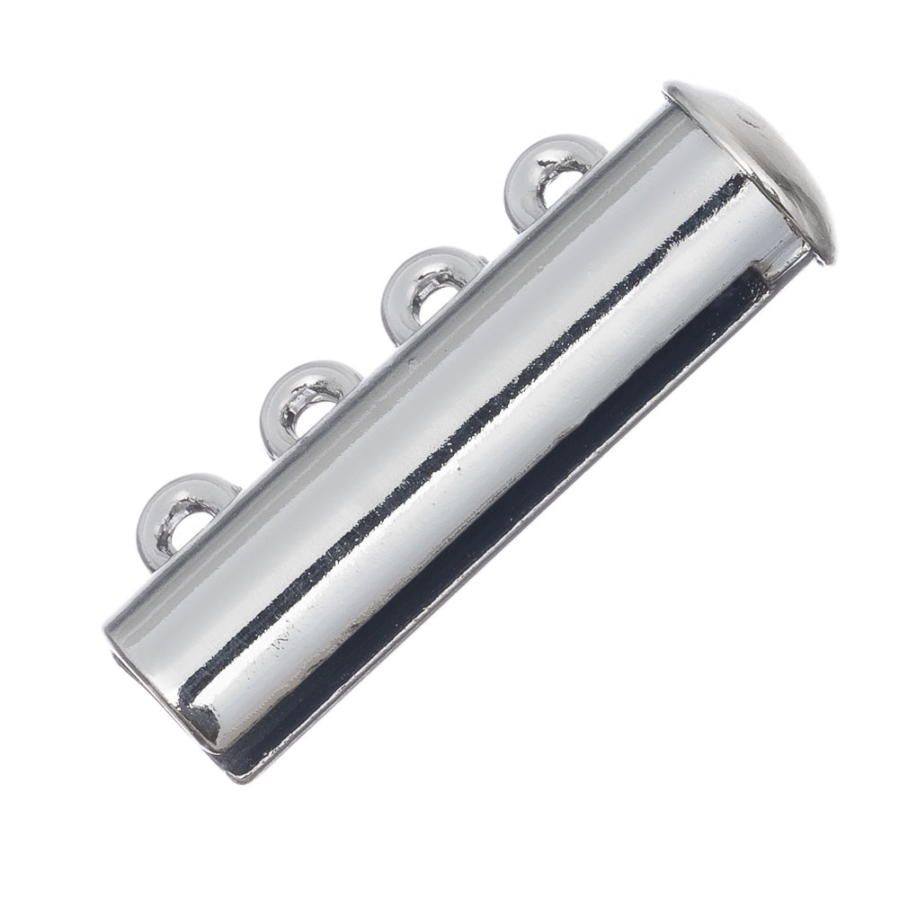 Description: This magnetic slide clasp features 4 small holes on either side, prefect for your multi strand designs. The magnets at the end of the clasp hold it closed and make it easy to open and close. Plated brass. Measures 25mm long x 10mm wide x 6mm thick, 2mm hole.