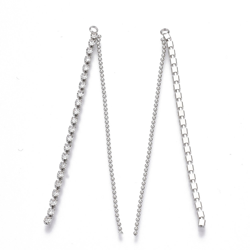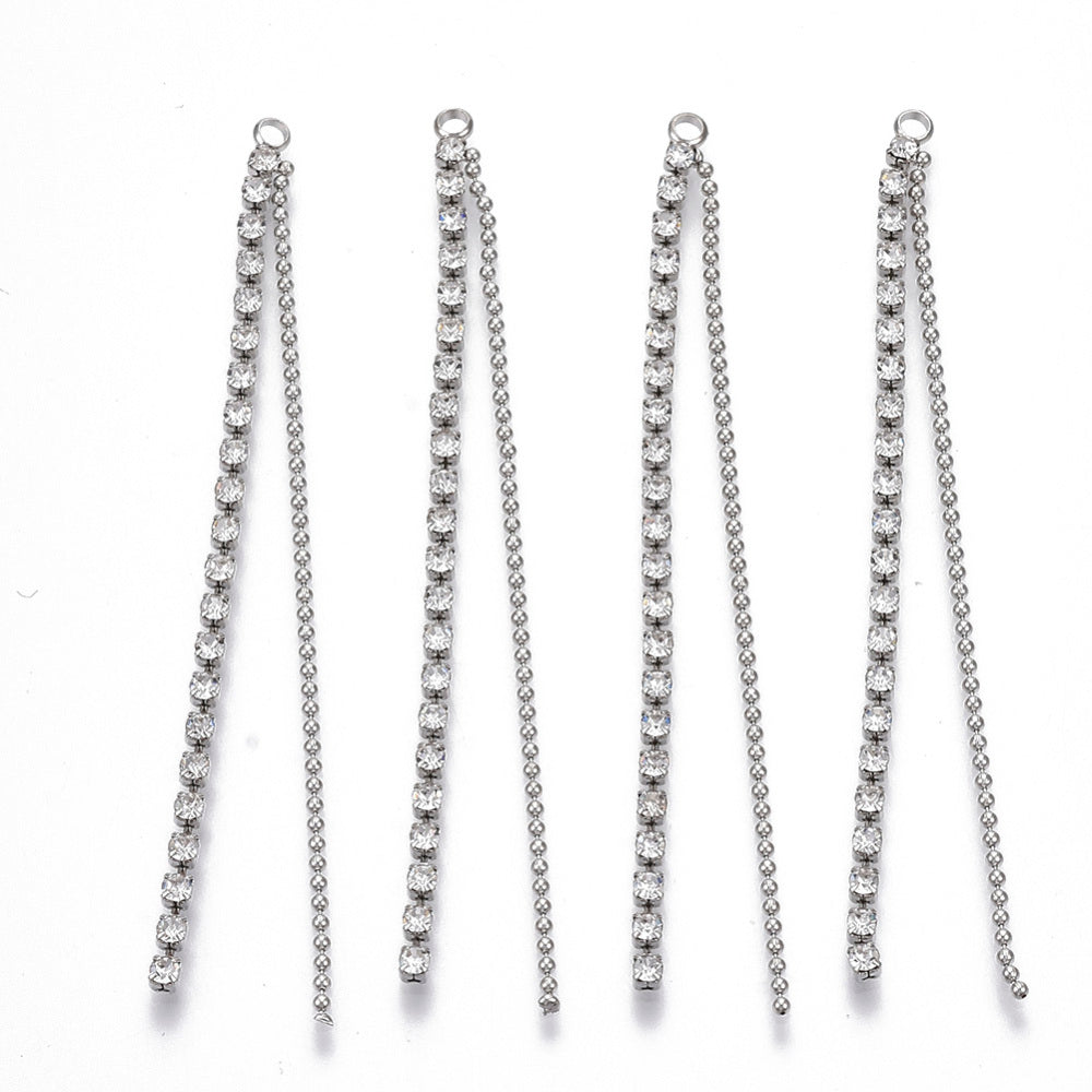 Description: Brass rhinestone cup and ball chain two strand tassel. Size: about 70mm long, 3.5mm wide, 2mm thick, hole: 1.6mm.