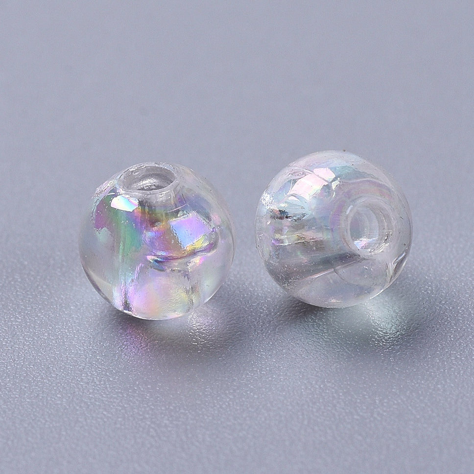 These round beads feature a beautiful AB (Aurora Borealis) finish that adds a subtle iridescent shimmer, reflecting a spectrum of colours in the light. Lightweight yet durable, they are perfect for jewellery making, beading projects, and decorative accents. Their transparent design allows for versatile pairing with other beads and findings, making them an ideal addition to any crafter’s collection.