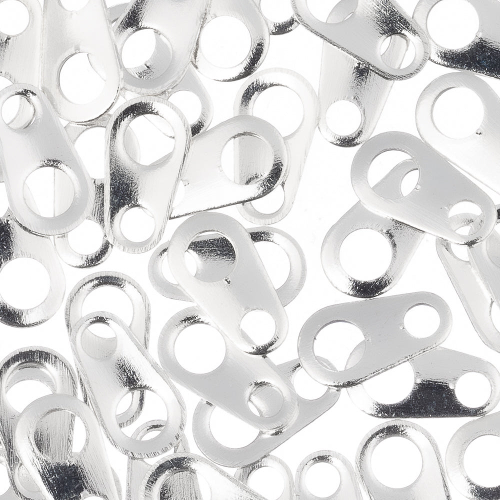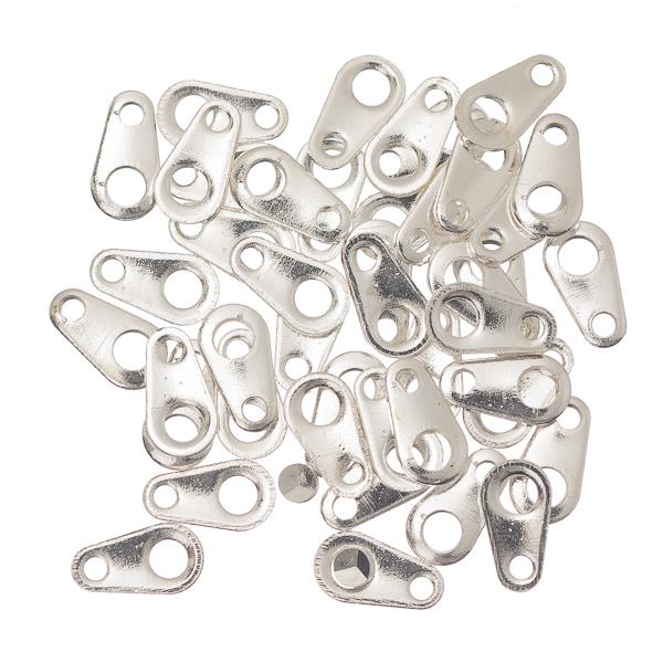Description: Chain tabs are great for use with spring rings or lobster clasps to finish the ends of necklaces and bracelets. Hook your clasp into a chain tab instead of a jump ring for a clean professional finish. Plated brass. Measures 3mm wide, 6mm long, hole: 1mm