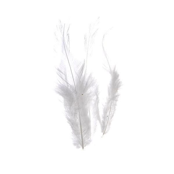 Description: Cleaned & sanitized white rooster saddle hackle body feathers. These feathers have many uses: earrings, costumes, fly tying, native crafts....